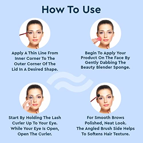• BEAUTY SURPRISE KIT This kit of 6 professional makeup tools is specially curated for you to nail all your party looks. It includes Powder brush Foundation Brush Eyeliner Brush Eyebrow Comb Eyelash Curler and a Beauty Blender. Grab these Professional tool