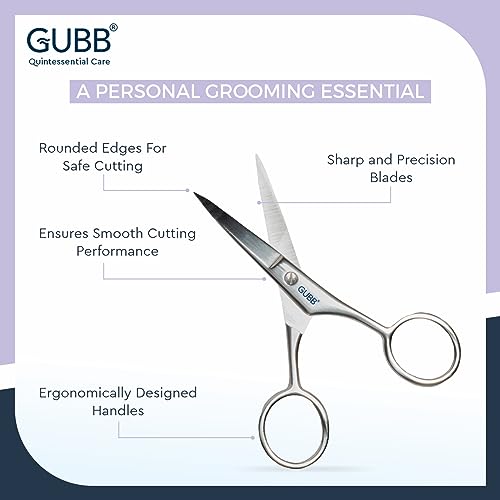 GUBB Grooming Scissor Small for Men & Women | Multipurpose Scissor Ideal for Men for Moustache, Beard, Ear and Nose Hair Trimming | Suitable for Women for Eyelashes and Eyebrow Trimming