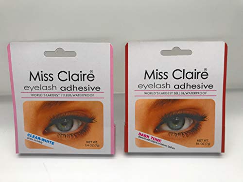 Miss Claire Eyelash Adhesive is formulated for Long lasting eye lash wear. Your falsies will stay on securely all day. This adhesive is clear white waterproof and dries invisibily.