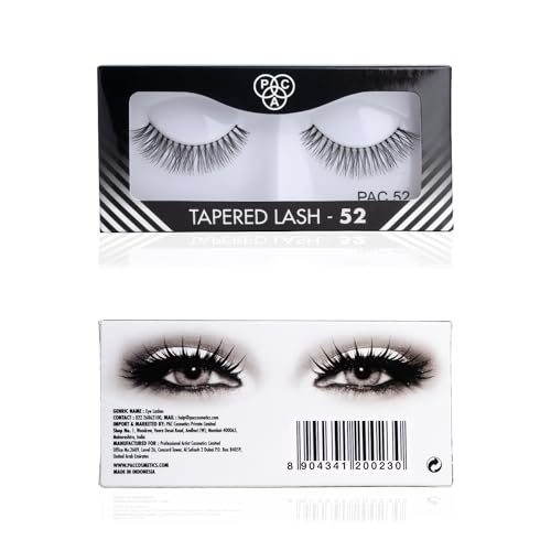PAC Tapered Eye Lashes for Women (52) | Eye Makeup | Cotton Fake Lashes | No Chemicals or Dyes | Long, Reusable, 3D Natural False Eyelashes Extension (Pack of 1)