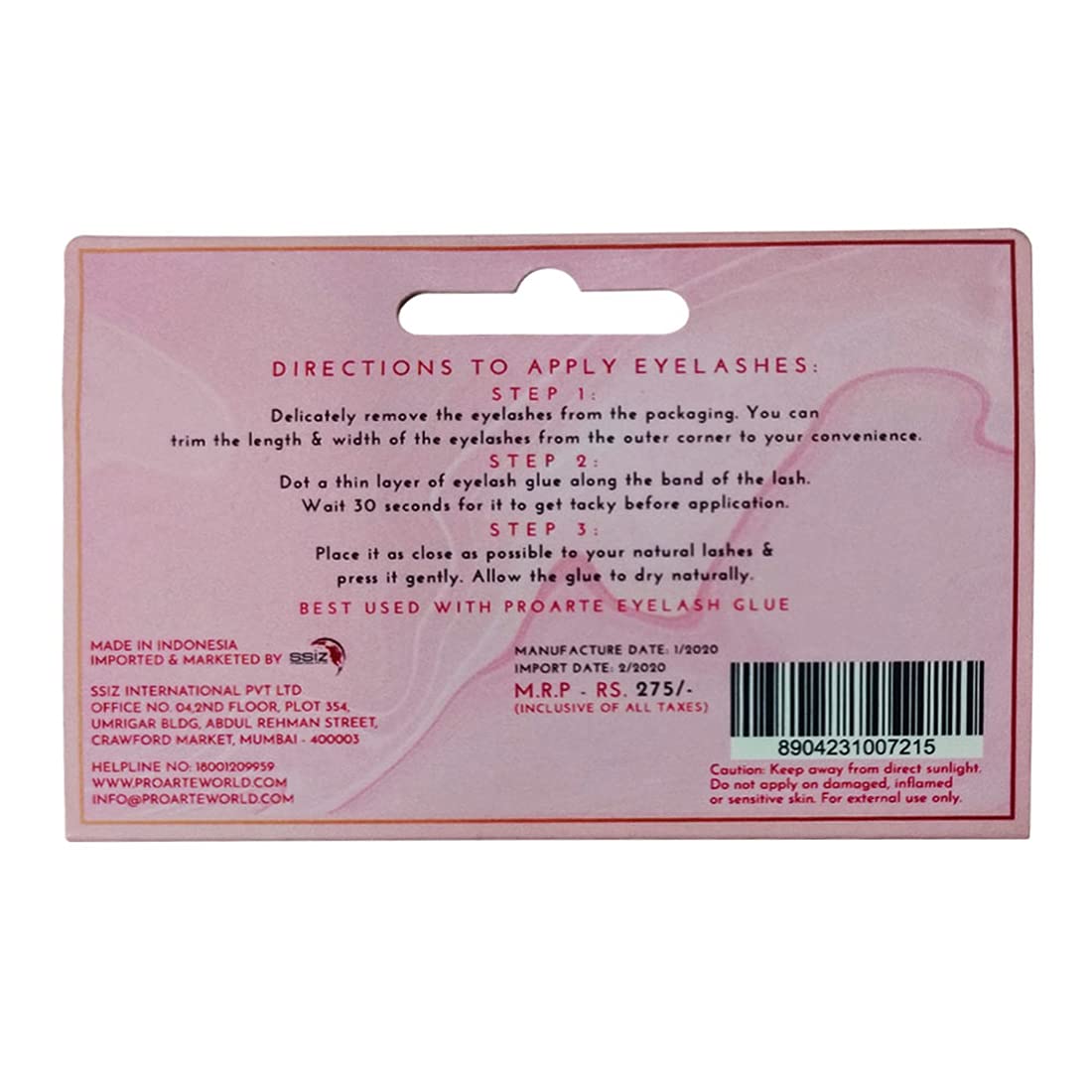 Step 1 - Delicately remove the lashes from the packaging. You can trim the length & width of the eyelashes from the outer corner to your convinience Step 2 - Dot a thin layer of eyelash glue along the band of the lash. Wait 30 seconds for it to get tacky before application. Step 3 - Place it as close as possible to your natural lashes and press gently. Allow the glue to dry naturally