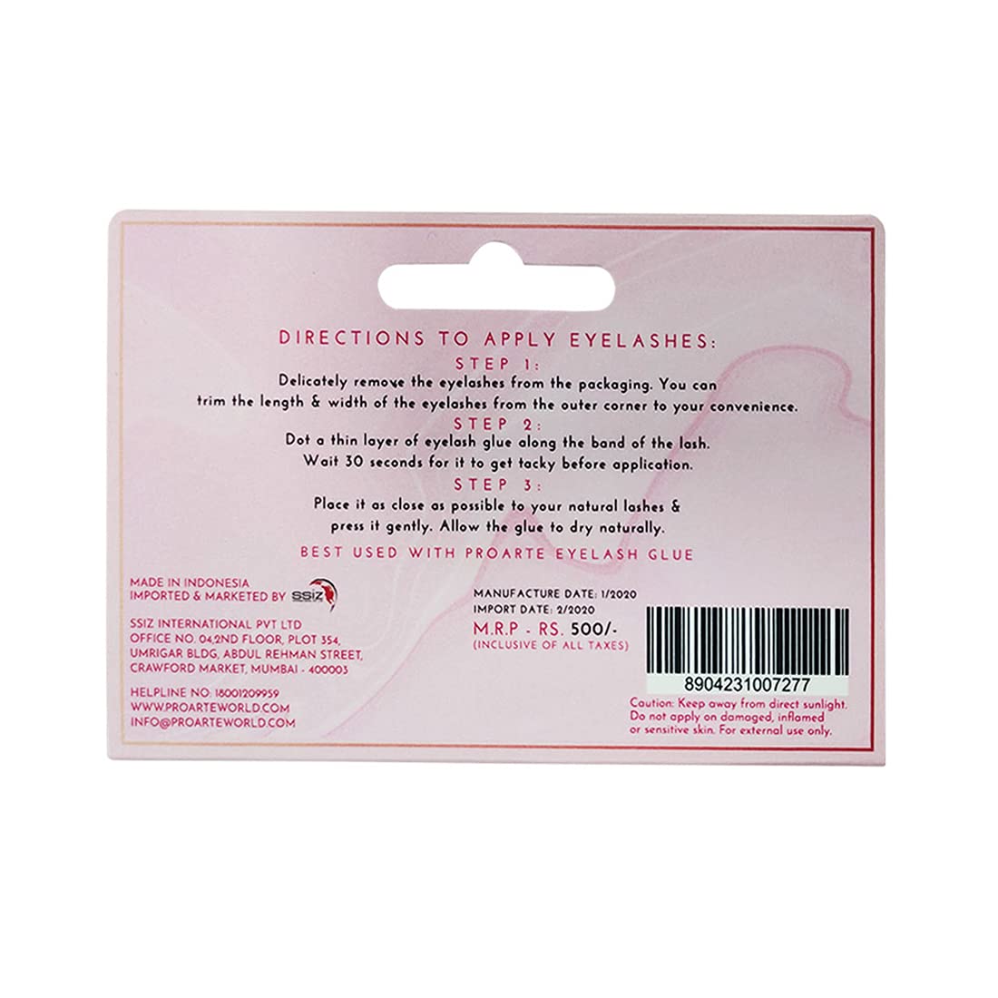 Step 1 - Delicately remove the lashes from the packaging. You can trim the length & width of the eyelashes from the outer corner to your convinience Step 2 - Dot a thin layer of eyelash glue along the band of the lash. Wait 30 seconds for it to get tacky before application. Step 3 - Place it as close as possible to your natural lashes and press gently. Allow the glue to dry naturally