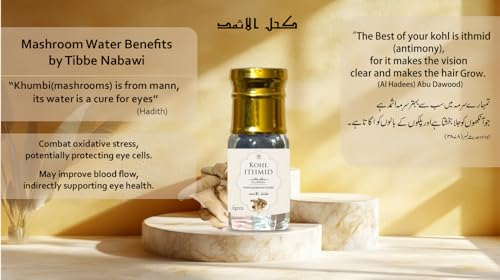 Experience the ancient beauty secrets of Al Masnoon Kohl Ithmid Surma a premium herbal eyeliner formulated with Mushroom Water and inspired by Tibbe Nabawi traditions. This 5g pack of kohl is designed to enhance your eyes with a rich deep color while embracing the benefits of time-honored ingredients.