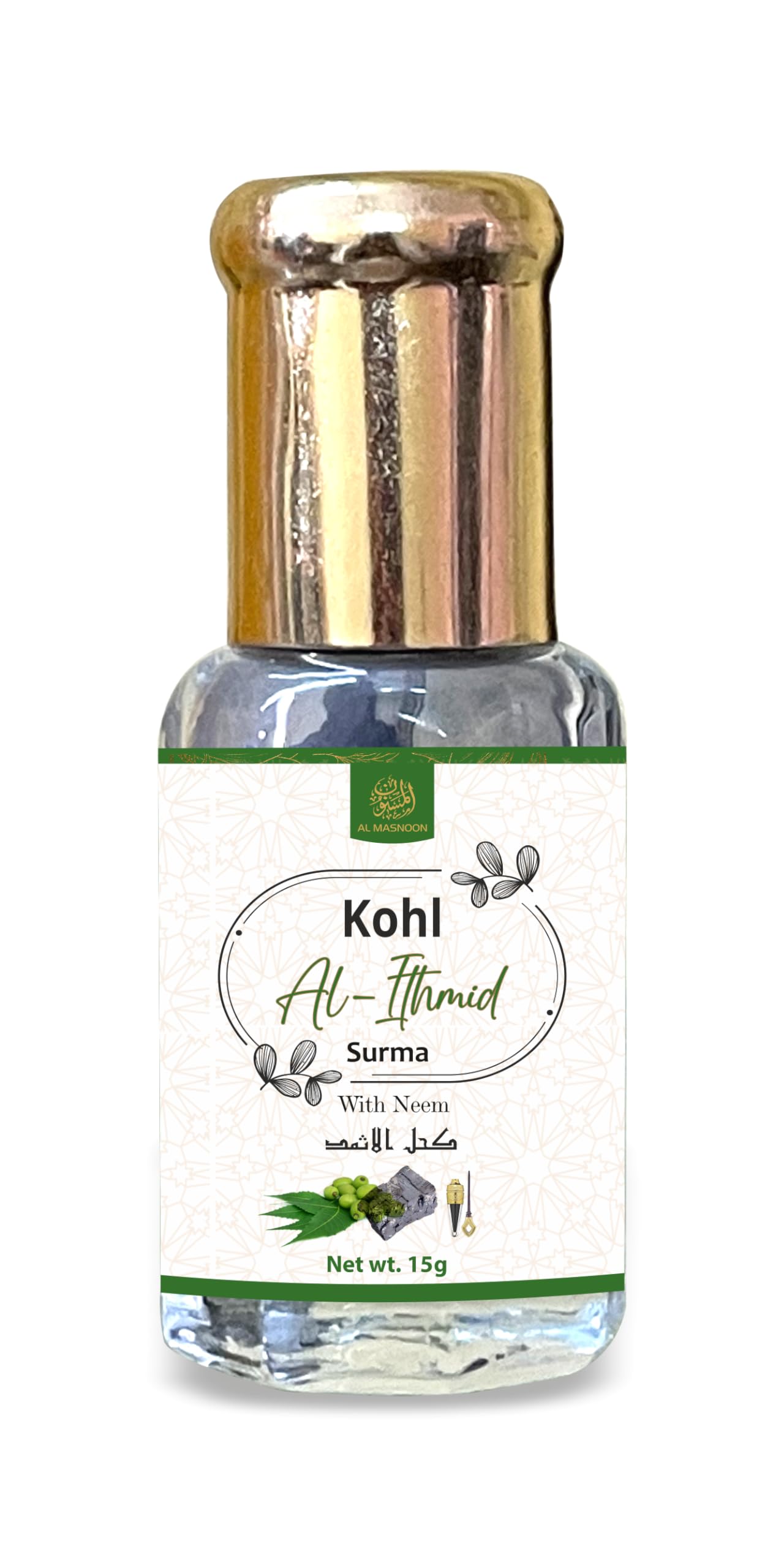 AL MASNOON Kohl Ithmid With Neem/Ithmid Surma With Neem (Pack of 3) Each 15g / 100% Natural