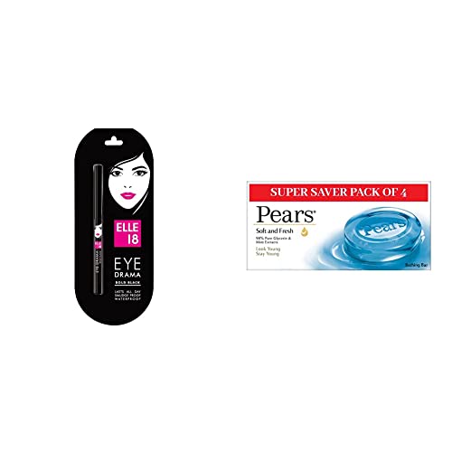 Elle 18 Eye Drama Kajal Bold Black 0.35gAdd more charm to your eyes with this Elle 18 Eye Drama from Elle 18. The Elle 18 Eye Drama is long lasting Kajal in a twist-up format. This dermatologically tested kajal is just what you need for completing your eye makeup or carrying a simple only-kajal look. It's a smudge proof water proof kajal and can add the dramatic and glamorous look to your eyes. It has intense matte texture and you can experiment with a thin line or a bold wing this kajal is great for day and night looks. Its long-lasting- up to 12 hours without smudging and is completely water proof. It is designed with an easy to use and convenient twist-up format. Just one stroke of the Elle 18 Eye Drama enhances your simple look to a more stylish avatar. You are incomplete without Elle 18 Eye Drama and this is a perfect everyday product! Get the Elle 18 Eye Drama in black now. The Elle 18 Eye Drama goes best with your looks further be it a wedding party and work look. Line your upper and lower eyelid with a rich coat of the Elle18 Eye drama Kajal. Draw from the inner corner towards the outer corner and join the line to form an upward wing. Its size and moisturizing properties makes this the perfect travel kajal for everyday use. Buy Now!Pears Soft and Fresh Bathing Bar 125g (Buy 3 Get 1 Free)Pears Soft & Fresh Is Enriched With Mint Extracts And Pure Glycerin. Mint Extracts Keep Your Skin Looking Soft And Fresh In Summers While 98% Pure Glycerin Gently Cleanses Your Skin And Retains Its Natural Moisture Keeping It Young And Beautiful. It Does Not Contain Impurities And Preserves Your Skins Natural Beauty. About Pears: Pears Is The Original 225 Years Old Glycerin Bar That Gives The Gentle Care Of Natural Oils & 98% Pure Glycerin To Your Skin. It Is The WorldâS First Transparent Soap And Advertised Brand. Its Undisputed Credentials On Mildness & Purity Driven By Its Unique Shape And Transparency Lend The Brand An Equity That Lasts Till This Day. Pears Is Amongst The Iconic Brands In India. Pears Which Has 30 Times More Moisturisers Than Regular Beauty Soaps And Is Proven To Deposit Glycerin In 10 Layers Of Skin. It Increases Hydration Of Your Skin After A Single Wash. The Pure And Gentle Bar From Pears Is Available Right Here - Buy It Now! Also From Pears: Pears Also Offers A 100% Soap Free Pure & Gentle Hand Wash Which Is Specially Made To Take Care Of Your Skin Cleansing Thoroughly Yet Softly. It Is A Gentle Way For You To Attain Clean Healthy Looking Skin. It Is Skin Ph Balanced And Contains Skin Conditioning Agents And Mild Cleansers. It Is Hypo-Allergenic And Non-Comodogenic