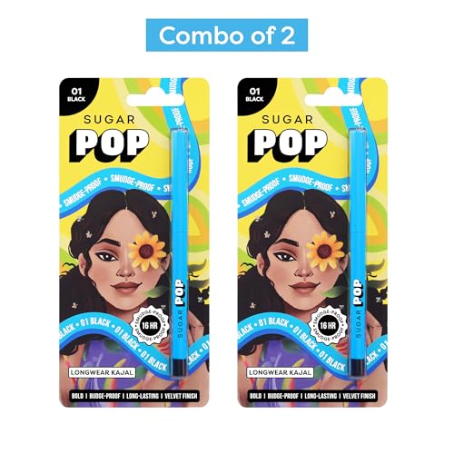SUGAR POP Longwear Kajal Matte Finish, Intense Dark Kohl Kajal Long Lasting, Smudge Proof Pencil, Water Proof, Single Stroke Velvet Finish Lasts Up To 16Hrs - 01 Black (Pack Of 2)