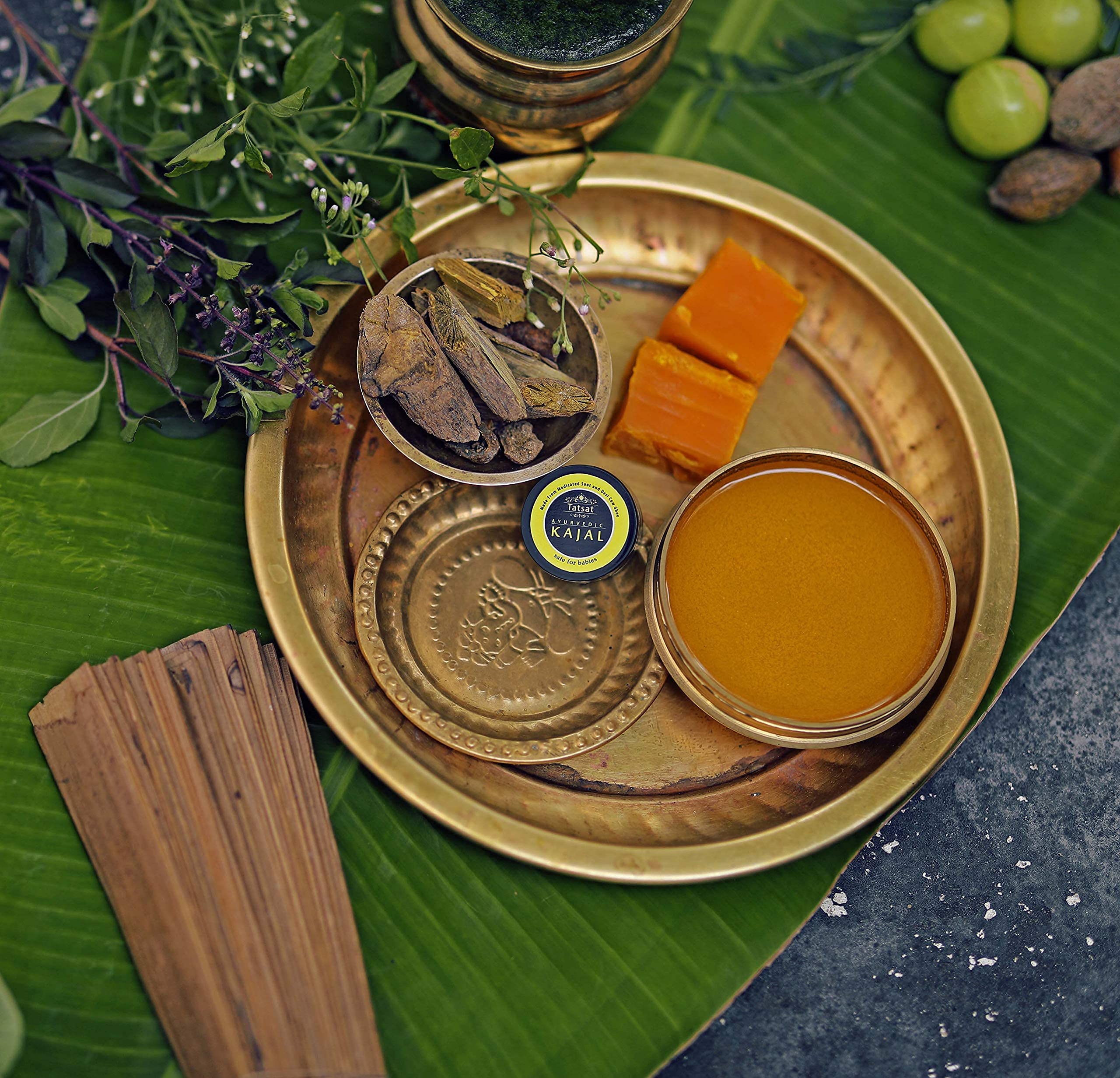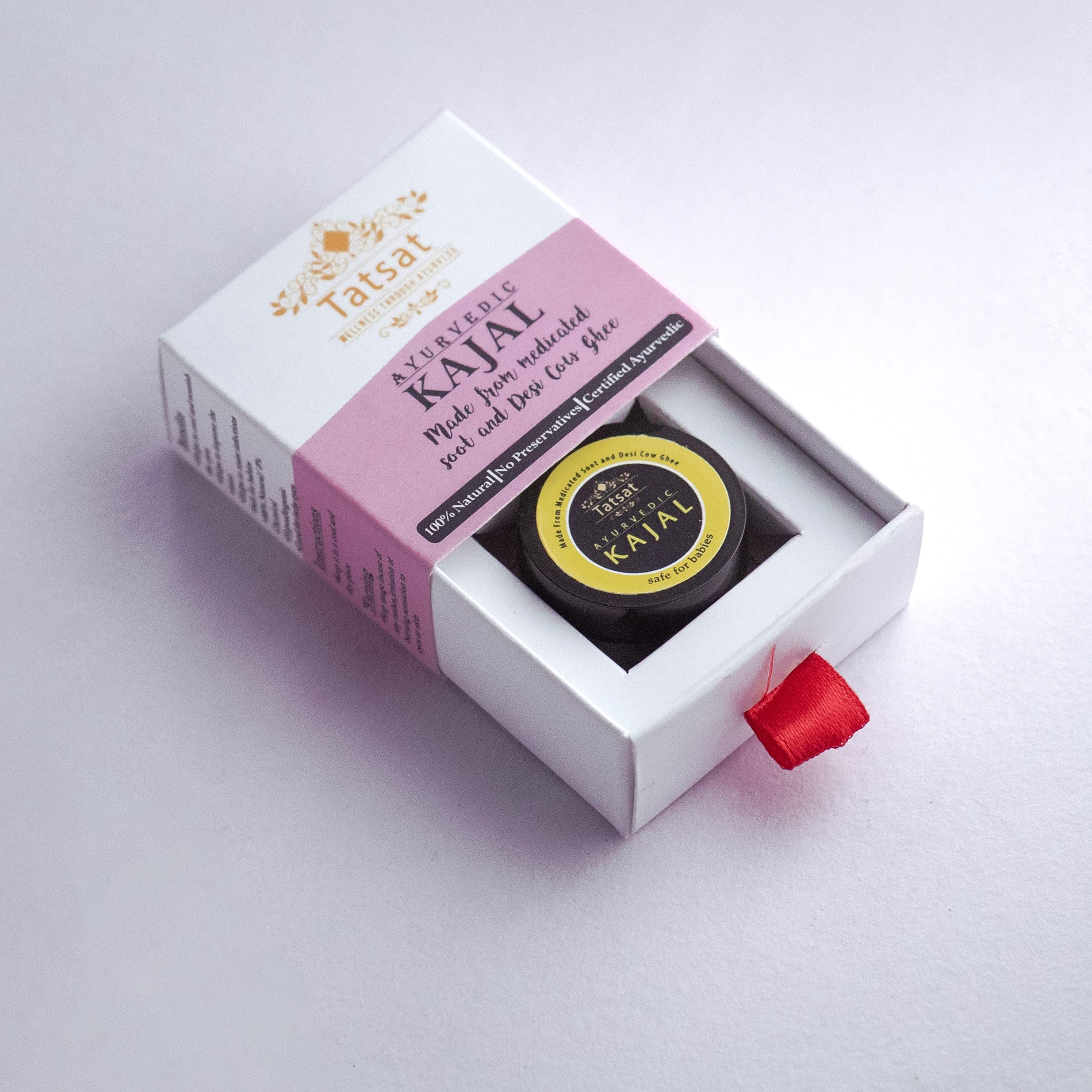 TATSAT-100% Natural Certified Ayurvedic Baby Kajal With Pure Herbs Medicated Soot Blend With Desi Cow Ghee Lab Tested Enriched With Certified Organic IngredientsNatural Baby Kajal -3gm