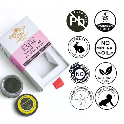HomeBeautyEyesKajalTATSAT - WELLNESS THROUGH AYURVEDA BABY Kajal,Natural,herbal and ayurvedic With Medicated Soot And Desi Cow Ghee|Safe For Babies|Lab Tested|No Preservatives, Black, Matte Finish