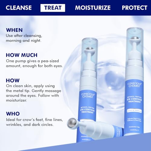 HomeBeautyEyesUnder Eye CreamConscious Chemist® Retinol Peptide Under Eye Cream With Soothing Massage Roller | Under Eye Roll On For Dark Circles, Fine Lines & Puffy Eyes | For Women & Men | 15 ml