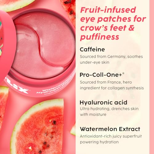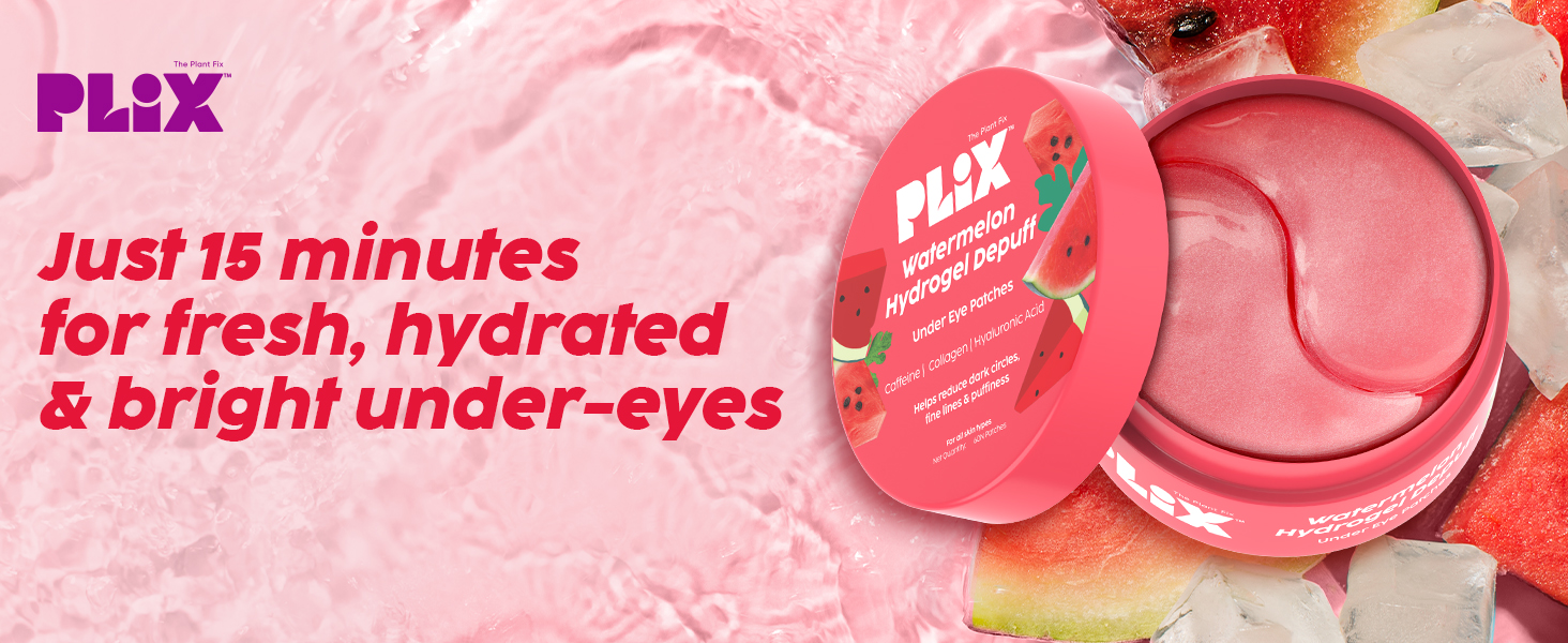 PLIX - THE PLANT FIX Watermelon Hydrogel Under Eye Patches for Dark Circles & Puffiness Reduction | Caffeine & Hyaluronic Acid | Eye Patches | Instantly Hydrates & Cools | 60 Patches