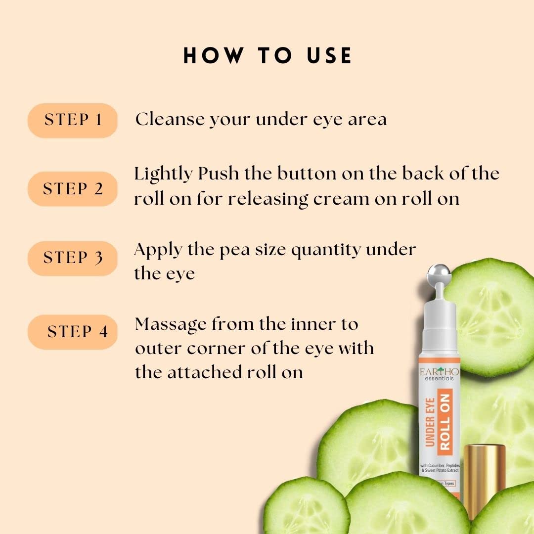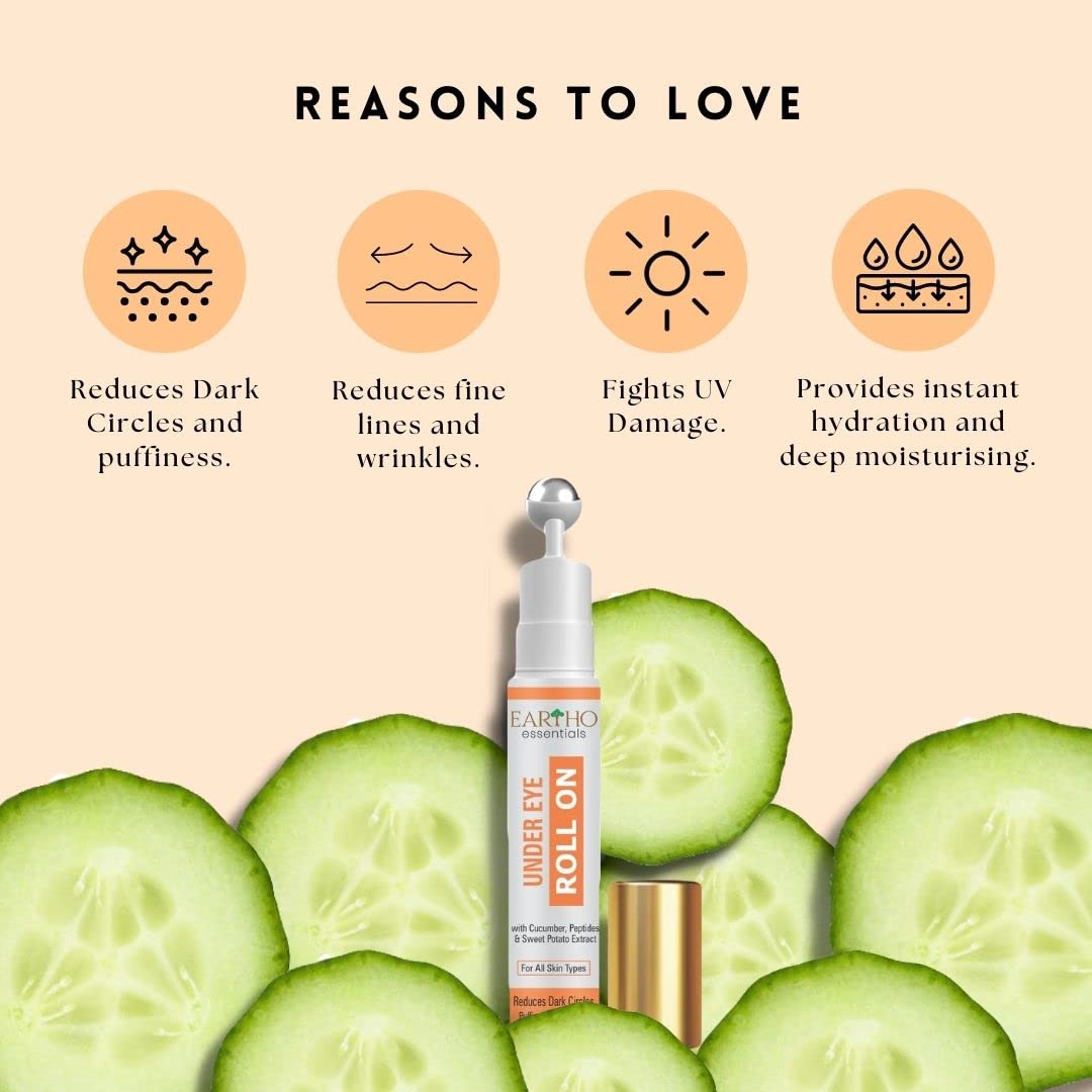 Eartho Essentials Under Eye Roll On (with Cucumber Extracts Kojic Acid and Sweet potato extracts) 15 ML