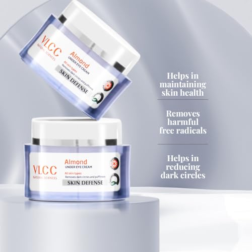 Product Description Directions for Use:Take an adequate amount of this Eye Cream onto your palm.Gently apply in the eye contour area.Apply twice in a day. Suitable for all skins. From the Manufacturer The VLCC almond under-eye cream comes in a 15 ml jar and can be used for removing dark circles under the eyes. It has a number of natural ingredients that have various beneficial properties. The chamomile extract used in this cream has anti-inflammatory and antiseptic properties that help in maintaining skin health. Additionally chamomile acts as an antioxidant that removes harmful free radicals.Because of its high mineral content the wheatgrass oil present in the cream considerably improves skin quality. Almond oil on the other hand is one of the other natural ingredients that helps in reducing dark circles under the eye. It also has anti-ageing properties and revitalises skin cells. Olive oil and vitamin E are the other natural constituents of the VLCC under-eye cream. These two ingredients are excellent moisturisers and also act as antioxidants.This cream from VLCC is suitable for all ages and can be effectively applied from the inside of the eye outline to the outside. This product is completely vegetarian and comes in recyclable packaging. It's not too oily and smoothly spreads out on the skin once it's applied. The VLCC Skin Defense under-eye cream is a suitable choice for those looking to get rid of dark circles or puffiness under the eyes.Product Features Available in a 15 ml container. Contains a number of natural ingredients such as almond oil chamomile extract wheat-grass oil olive oil and vitamin E. Suitable for all ages. Has mouisturing properties.