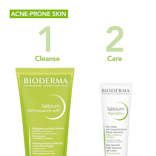 Bioderma Sebium Gel Moussant Actif Intense Purifying Cleansing Foaming Gel with Salicylic & Glycolic acid |Oily and Acne-Prone Skin, 200ml