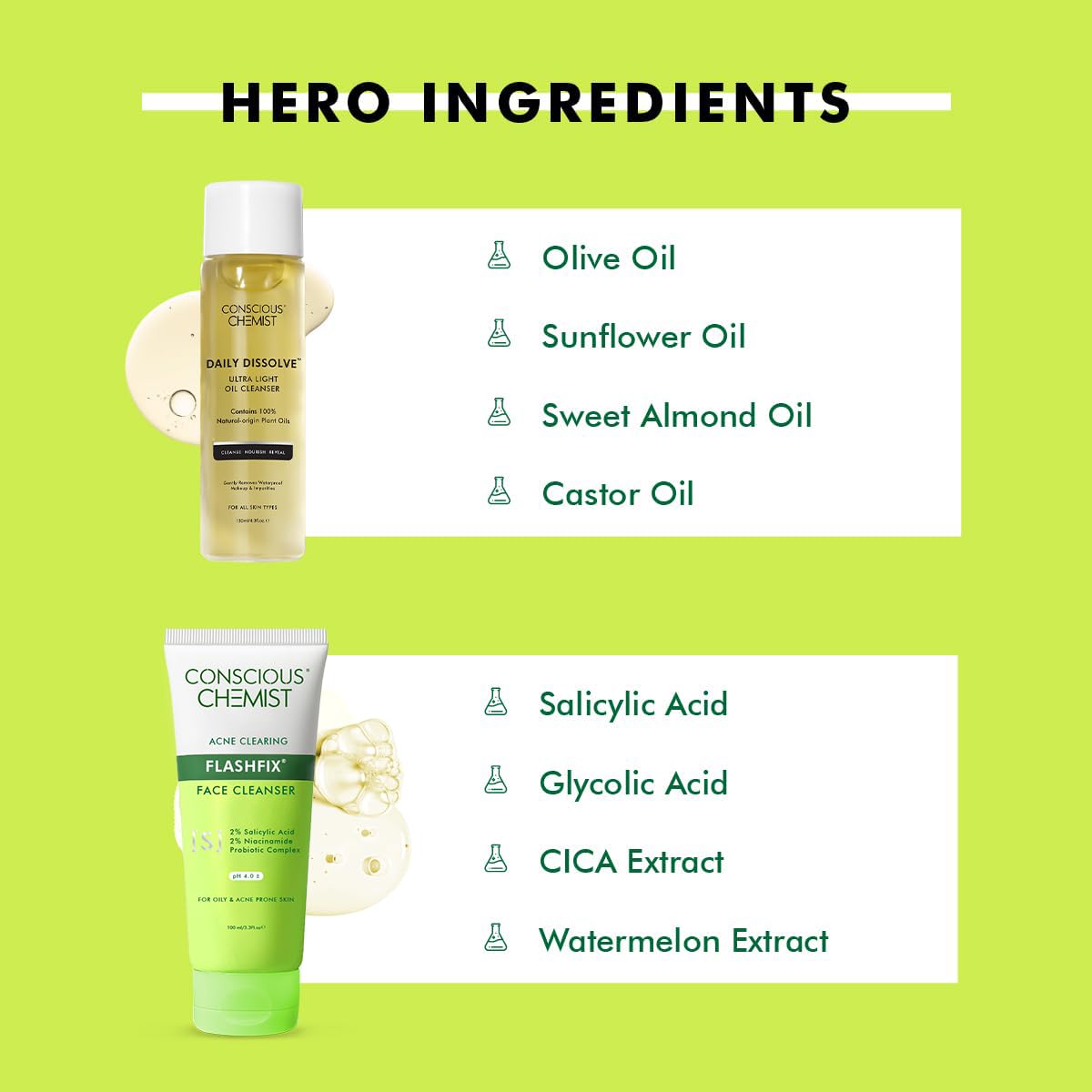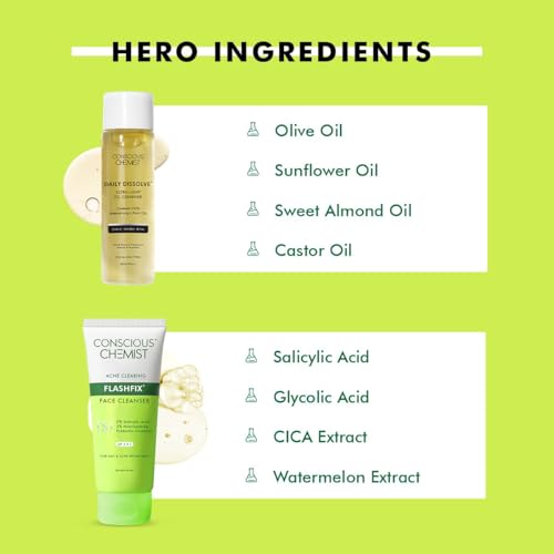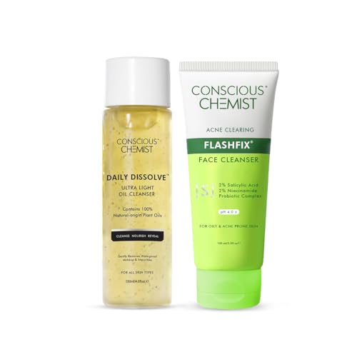Grab your one-shot Pore care! Daily dissolve Oil Cleanser - Make way for your first essential cleanse with Daily Dissolve cleansing oil. It is designed to remove even the toughest pigments & pollutants. Flashfix Oil Control Cleanser - It is carefully formulated to reduce breakouts and prevent future ones.It gently removes pore-clogging debris impurities and excess oil this refreshing gel cleanser lifts away daily build-up to leave your pores feeling clean and purified.