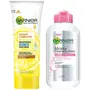 Garnier Skin Naturals Micellar Cleansing Water 125mlGarnier Micellar Cleansing Water is a make-up remover and cleanser that removes make-up and other impurities from your skin easily. It is enriched with cleansing molecules called Micelles that attract impurities lifting them away from your pores â just like a magnet. No rubbing is needed. How to use â Pour some micellar water onto a cotton pad press lightly on the skin for a few seconds swipe away gently. Proof is on the cotton. Garnier Micellar Cleansing Water is perfect for everyday make-up. If heavy and waterproof make-up is more your style try the Garnier Micellar Oil Infused Cleansing Water.Garnier Skin Naturals Light Complete Duo Action Facewash 100gGarnier Light Complete Duo Action is a womens facewash which gives you fairer looking skin in 1 wash. It is enriched with White Clay which gives instant whitening and Lemon Extracts which helps reduce dark spots. It also has Vitamin B3 and Vitamin CG known to help reduce the appearance of new dark spots. It is suitable for all skin types. How to use - Apply on wet face. Gently massage with fingertips. Avoid the eye contour area. Rinse thoroughly. For best skin care results follow it up with Garnier Light Complete Serum Cream during the day and Garnier Light Complete Night Cream at night.