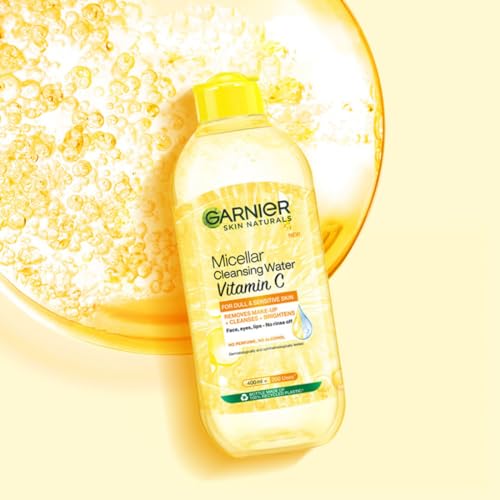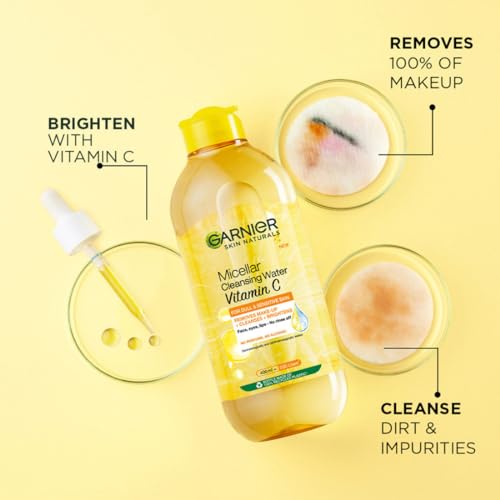 • ONE-SWIPE CLEANSE: The Garnier Vitamin C Micellar Water cleanses impurities removes makeup and brightens skin in a go. The Garnier Micellar Water removes dirt and dullness without harsh scrubbing or rinsing.