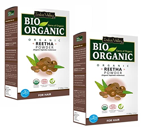 INDUS VALLEY Bio Organic Reetha Powder | Sapindus mukorossi | 100% Organic & Chemical Free Skin Cleanser (100g*2= 200g)