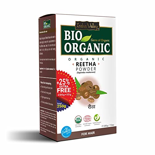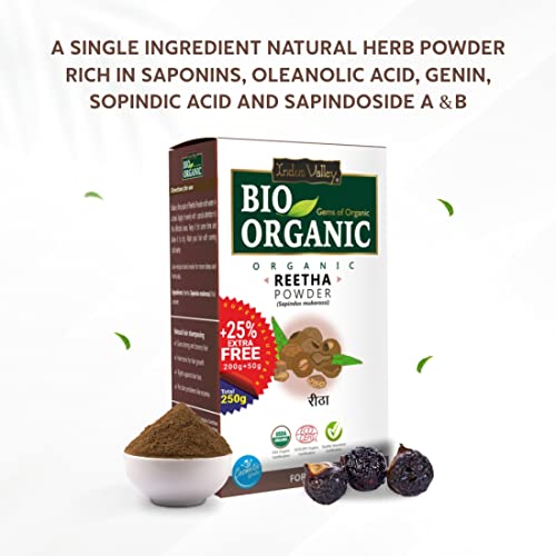 INDUS VALLEY Bio Organic Reetha Powder | Sapindus mukorossi | 100% Organic & Chemical Free Skin Cleanser - 200gm+50gm