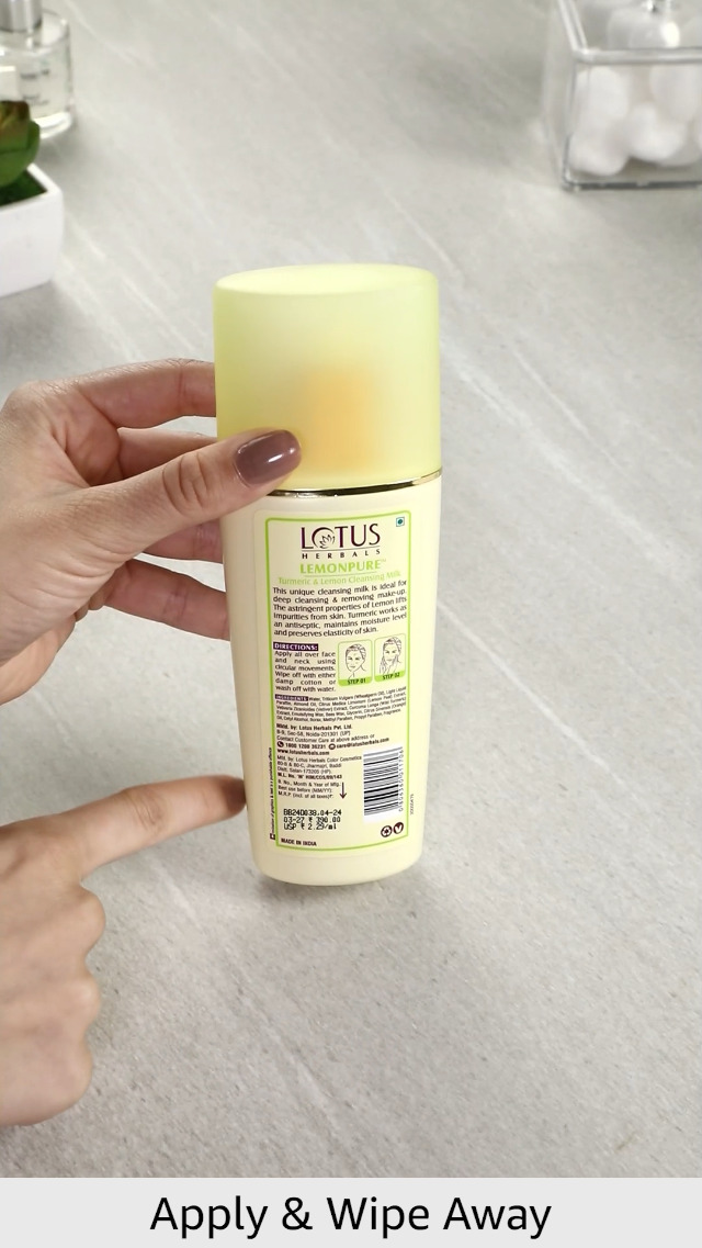 Lotus Herbals Lemonpure Turmeric & Lemon Cleansing Milk | Makeup Remover | For All Skin Types | 170ml
