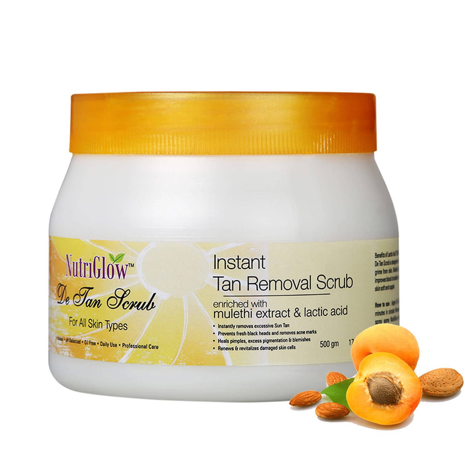 HomeBeautyFace CareCleansersCleanserNutriGlow De Tan Scrub For Deep Exfoliation Tan Removal Brightening Skin Acne Prone Blackheads Pore Cleanser Oily Skin No Paraben & Sulpahate 500 gm