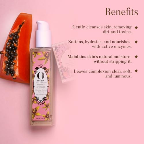 Ohria Ayurveda Papaya & Yoghurt Facial Cleanser | Gentle, Moisture-Retaining Formula | With Rose Water| Soap-Free, Nourishing Cleanser for All Skin Types | Men & Women | 200ml