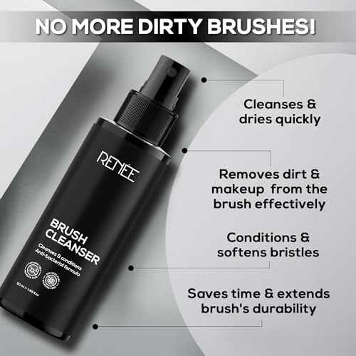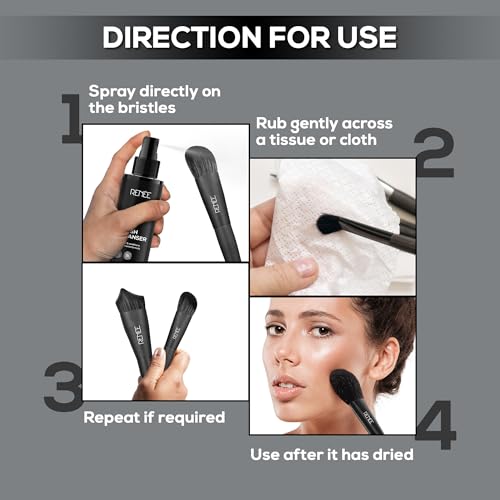 Squeaky clean wands in seconds! RENEE Brush Cleanser keeps your makeup brushes hygienic and fluffy ready to blend like a dream and paint your masterpiece in a blink. It is your real-life hero that wipes away all the makeup gunk leaving your brushes squeaky clean and soft. Just spray some and wait for it to work and wipe away the makeup residue and dirt quickly turning the bristles anew and ready-to-use. Its a perfect way to keep your brushes germ-free which helps keep your skin safe from infections allergies and acne caused due to dirty brushes. Ditch the dirty mess and say hello to clean and feathery soft brushes with RENEE Brush Cleanser.