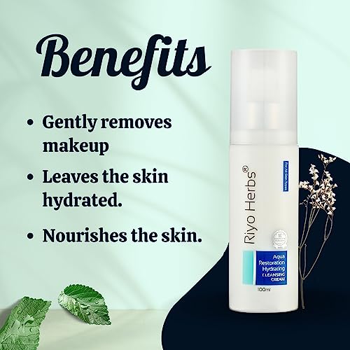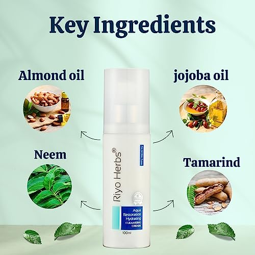RIYOHERBS AQUA RESTORATION CLEANSING CREAM deeply cleanses the skin removing all dirt dust and impurities from the skin. It gently and effectively removes makeup and leaves the skin clean and nourished. Natural extracts makeup remover is enriched with the goodness of neem tamarind & almond oil which leaves skin nourished and hydrated and brings natural luminance to skin.Best Hydrating Cleansing Cream at affordable price.FOR NORMAL TO DRY SKINQTY-100MLEffects:Gently removes makeupLeaves the skin hydrated.Nourishes the skin.HOW TO USE:Take a small amount of cleanser on fingertips or cotton pad massage onto face and neck in a circular and anti-clock wise motion then wipe it off.KEY INGRIDIENTS:ALMOND OILJOJOBA OILNEEM EXTRACTTAMARIND EXTRACTGLYCERIN.For best results use RiyoHerbs CTM kit as your daily skincare regime.