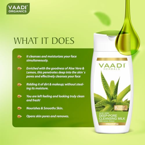 Vaadi Herbals Aloevera Deep Pore Cleansing Milk with Lemon Extract, 110ml