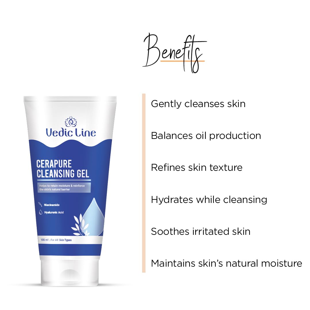HomeBeautyFace CareCleansersCleanserVedicline CeraPure Cleansing Gel for Balanced & Hydrated Skin With Niacinamide & Hyaluronic Acid for Daily Use 100ml