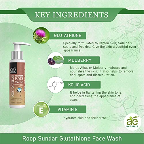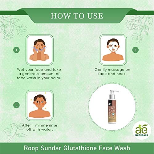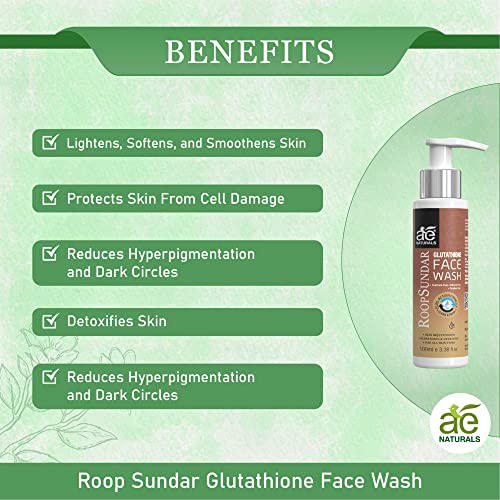 HomeBeautyFace CareCleansersFace WashAE Naturals Roop Sundar Glutathione Face Wash | Your Ayurvedic Solution for Glowing and Refreshed Skin | For Oily, Dry, and Sensitive Skin, Controls Acne, Brightening, and Lightening Formula 100ml