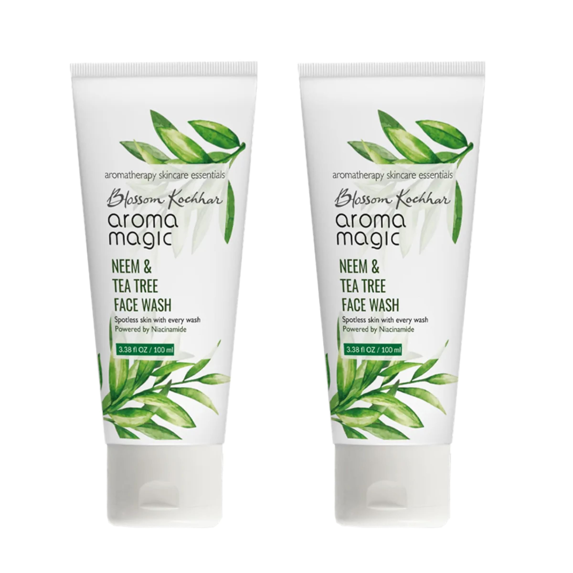 Aroma Magic Neem & Tea Tree Face wash PWRD By 5% Niacinamide & Aloevera Gel| for Spotless & Soft Skin| Oily & Acne/Pimples Prone Skin| for Women & Men| 100 ml| pack of 2