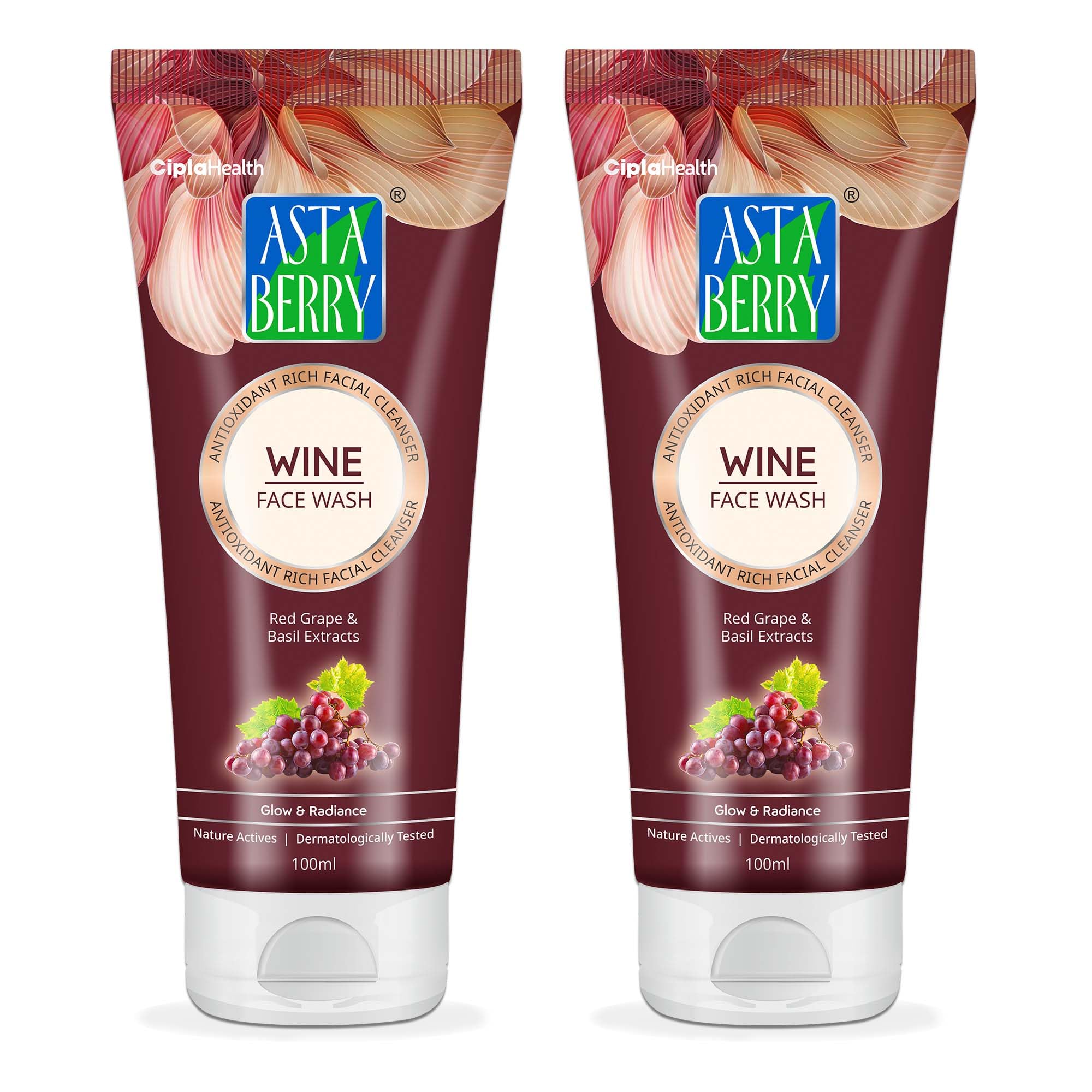 HomeBeautyFace CareCleansersFace WashAstaberry Wine Face Wash for helps in cleansing and moisturization of the skin - providing glow and radiance | exerts a powerful antioxidant effect to help delay ageing (Pack of 2 (100ml X 2))
