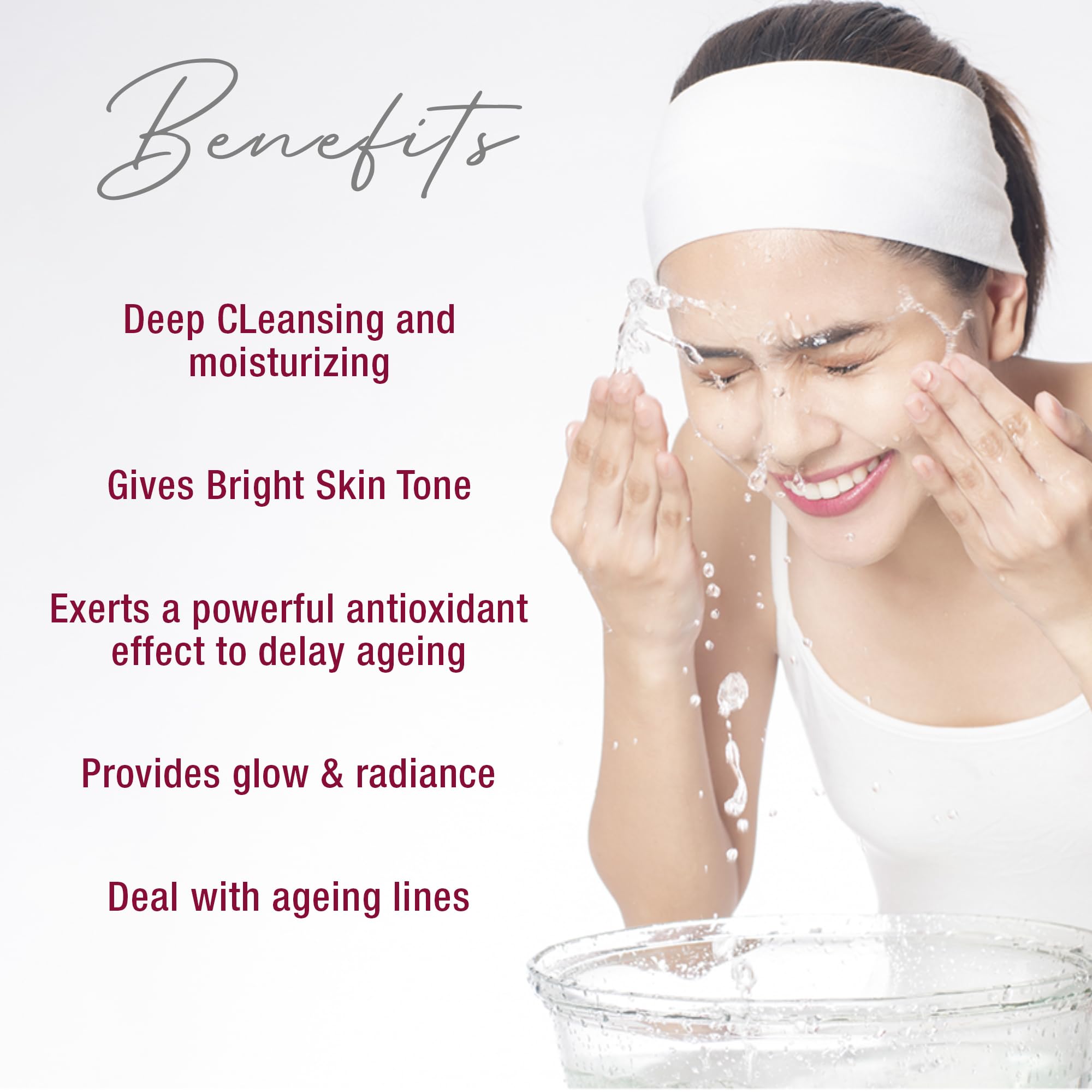 Astaberry Wine Face Wash for helps in cleansing and moisturization of the skin - providing glow and radiance | exerts a powerful antioxidant effect to help delay ageing (Pack of 2 (100ml X 2))