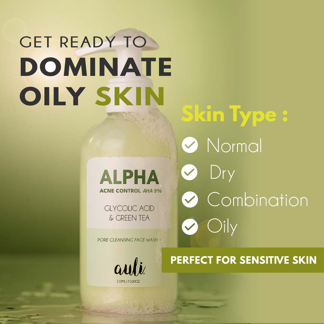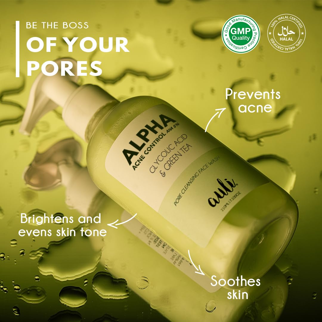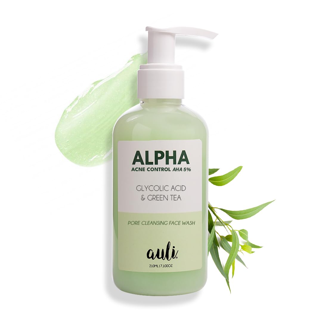 AULI LIFESTYLE Glycolic Acid 5% & Green Tea Pore Cleansing Face Wash | Reduce Acne & Breakouts Ph Balance Sweat & Excess Oil Control | All Skin Types | For Men & Women | Ayurvedic | Alpha 210Ml