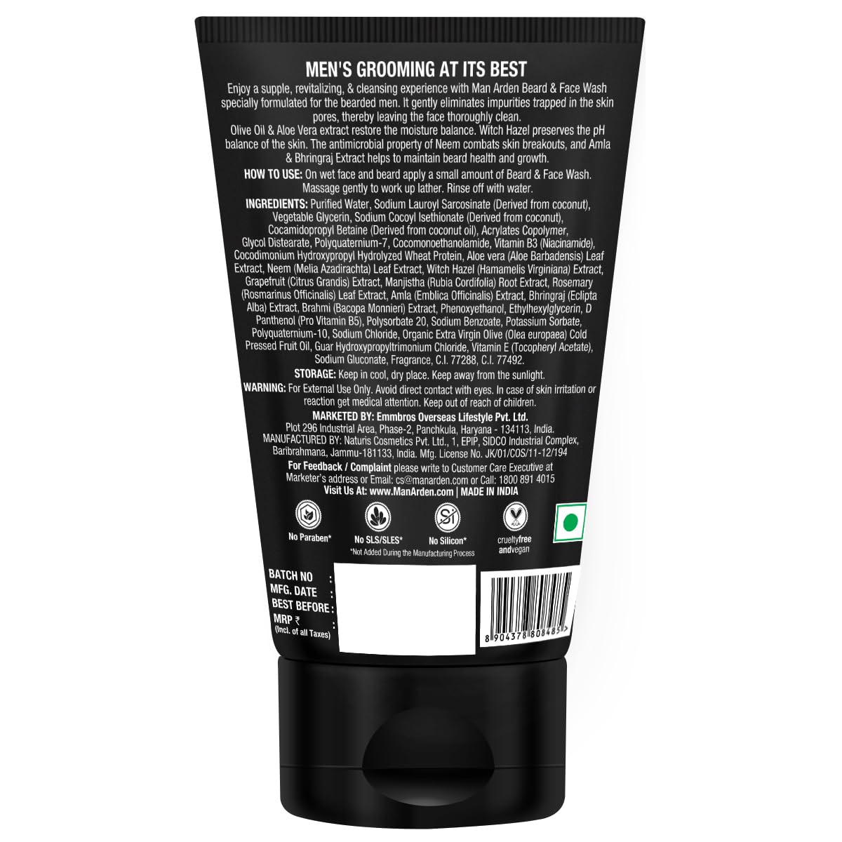 Man Arden Beard & Face Wash For Men - No Parabens Sulphate Silicones - 100mL