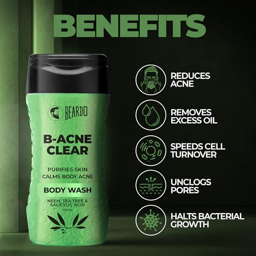 • SmootherPERFECT FOR MEN'S TOUGH SKIN: Beardo Provides Award Winning Skin Care Products for Men. Beardo's B-Acne Body wash is specially designed to be effective on men's tough skin. clearer skin Soothes skin inflammations Reduces body acne breakouts Contro