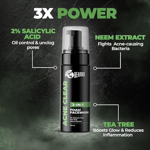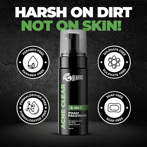 • SMOOTHER CLEARER SKIN: Beardo's got your back with the Acne Clear Facewash which reduces oil production while also removing acne overtime.