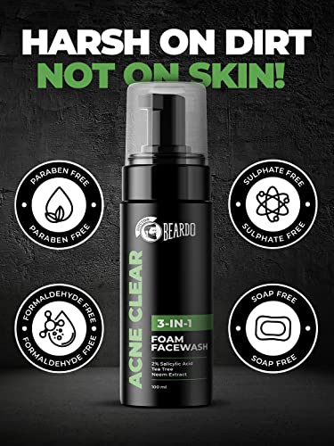 Beardo Acne Clear Foam Face Wash, 100ml | 3-in-1 Face Wash for Acne and Pimples | Anti Acne Face Wash for Men | 2% Salicylic Acid for Acne Prone Skin