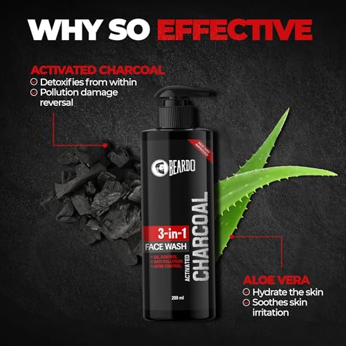 Beardo 3-in-1 Activated Charcoal Face Wash| Deep Cleanse, Exfoliate & Detoxify | All-in-One Face Wash for Oily Skin, Dirt & Pollution Removal | Oil Control Face wash for men 200ml