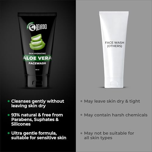 • PUNCH OF REFRESHING GOODNESS: Splash your skin the goodness of Aloe vera using Beardo’s Aloe Vera Skin Hydrating Facewash. One of the frontrunners in Beardo Naturals’ range this soap-free face wash is free from harsh chemicals and super gentle making