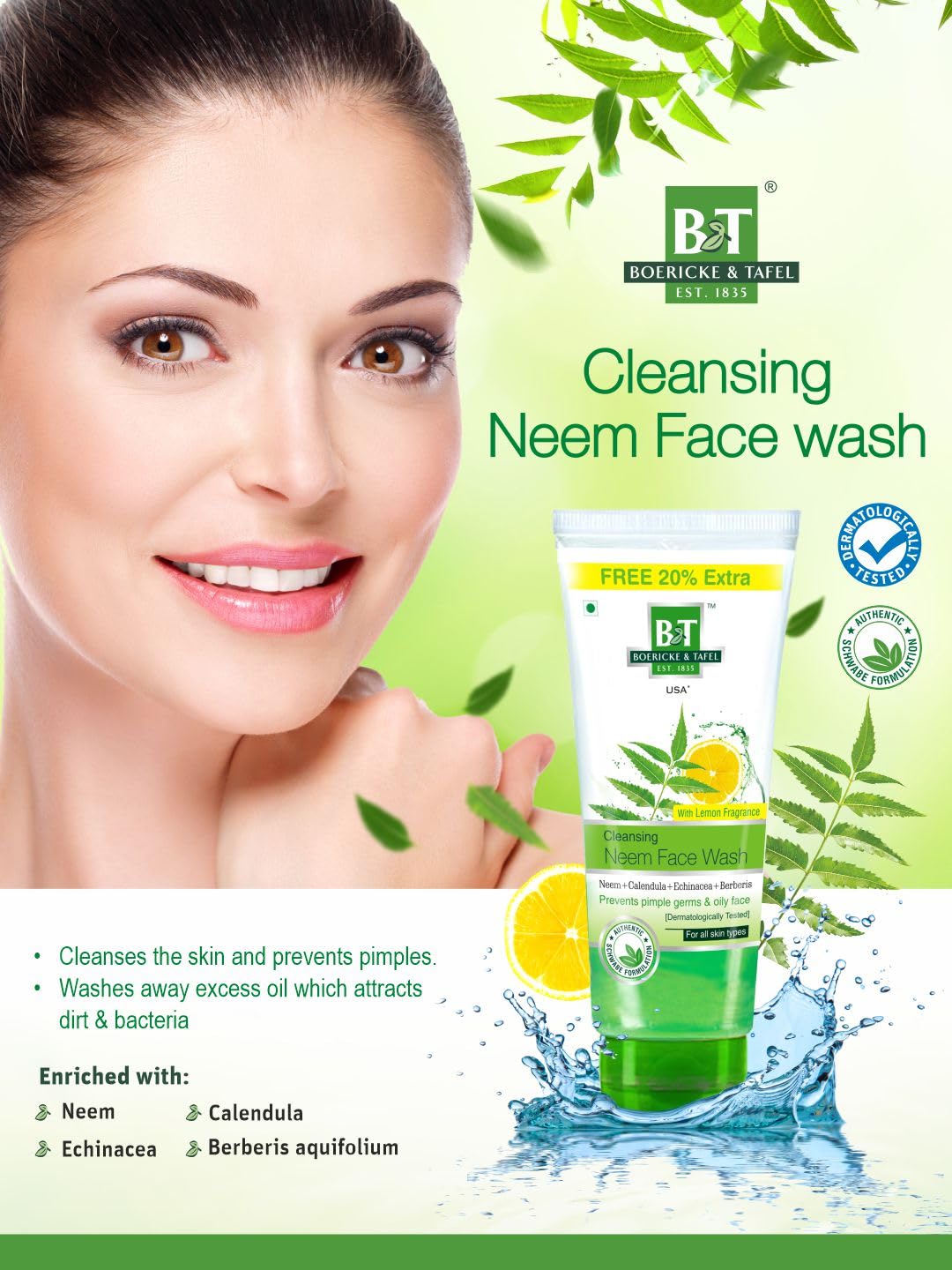 NEEM FACE WASH : Neem is a natural imngredient known for providing excellent results for all types of skin. Combined with Berberies Aquifolium and Calendula it provides cleana and clear skin.
