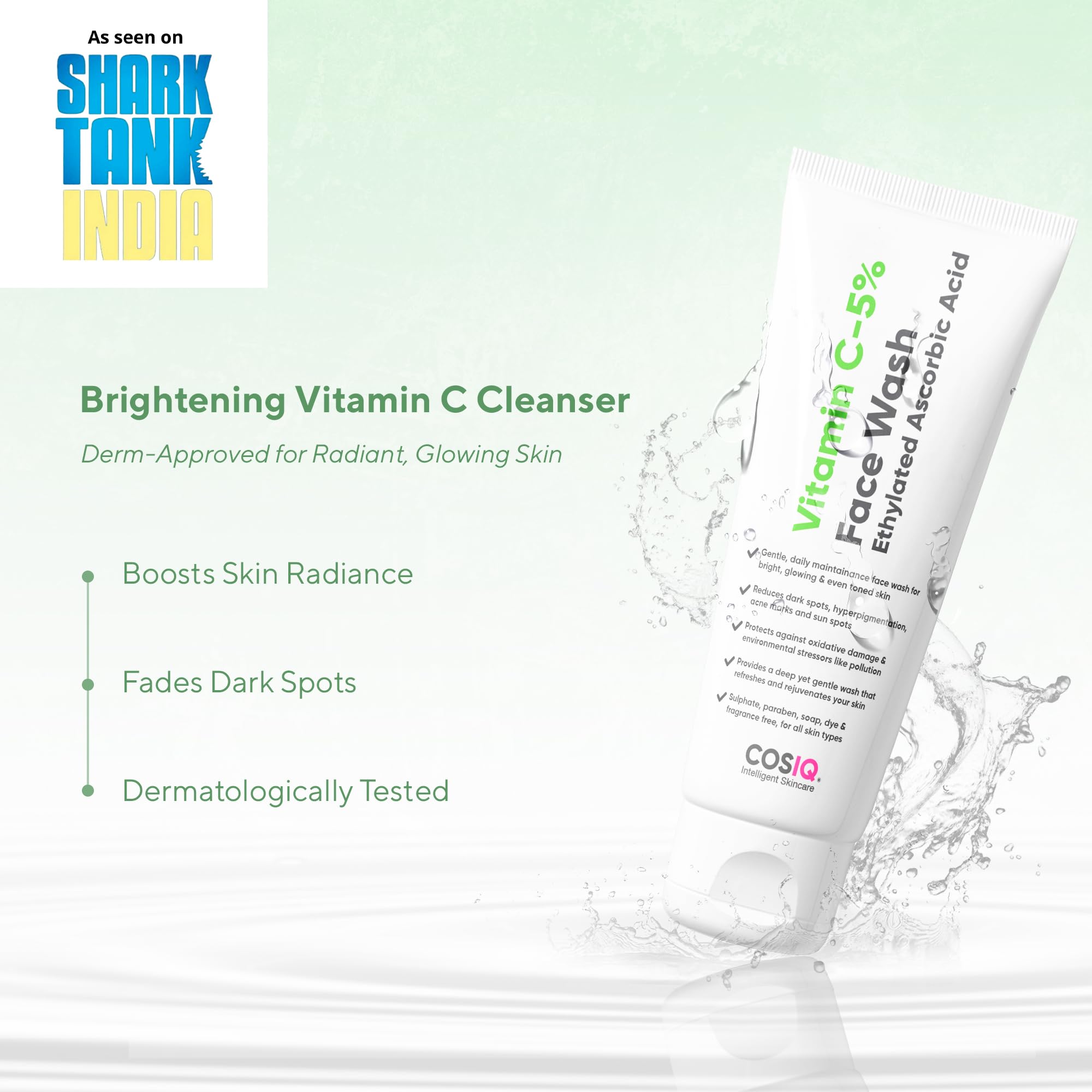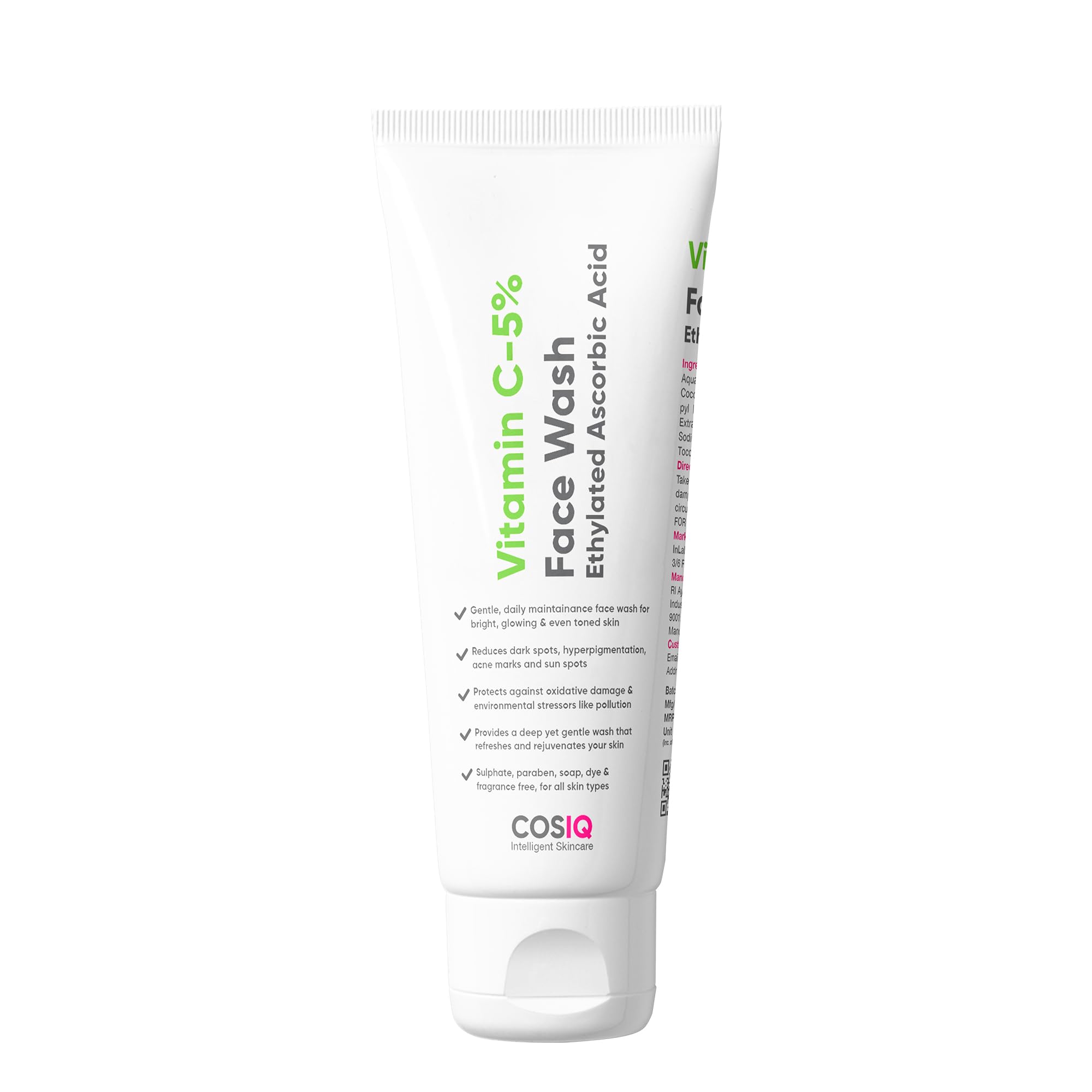 Cos-IQ 5% Vitamin C Face Wash for For Glowing & Brightening Skin | All Skin Types | Fight Dark Spots Acne & Pimples Brighten Skin Clears Dirt & Oil Control| Multi-Action Formula| Women & Men| 100ml