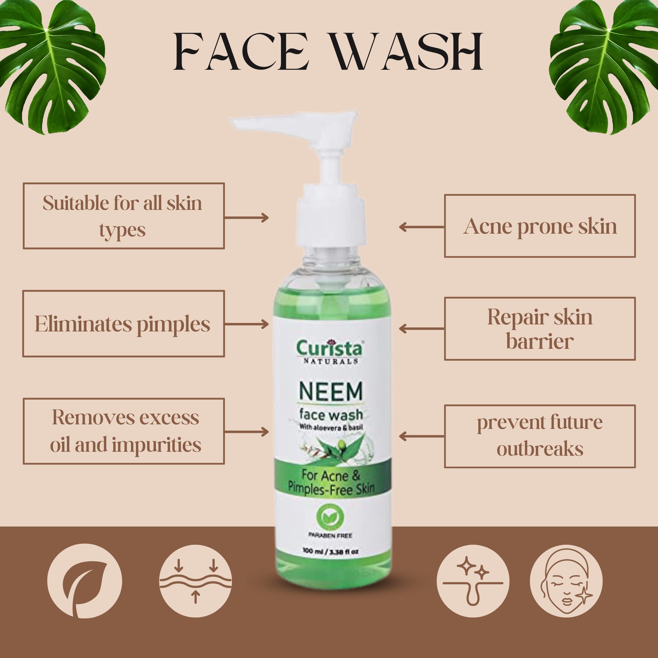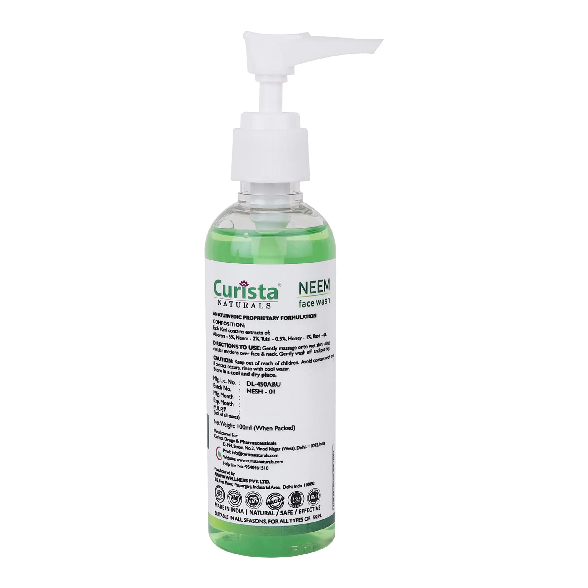 Curista Naturals Neem Face Wash | For Acne & Oil Control | Bright & Clear Skin | Deep Cleansing | For All Skin Types | Paraben & Sulphates Free | Face Wash for Women & Men | 100ml