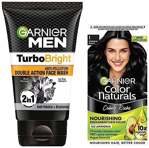 HomeBeautyFace CareCleansersFace WashGarnier Men Power White Double Action Face Wash, 100gm and Garnier Color Naturals, Shade 1, Natural Black 70 ml + 60 gm