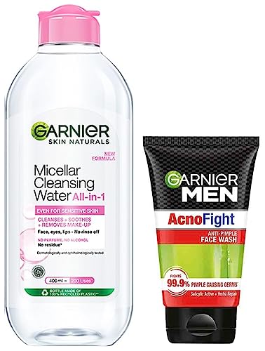 Garnier Skin Naturals, Micellar Cleansing Water, 400ml and Garnier Acno Fight Face Wash for Men, 100 gm