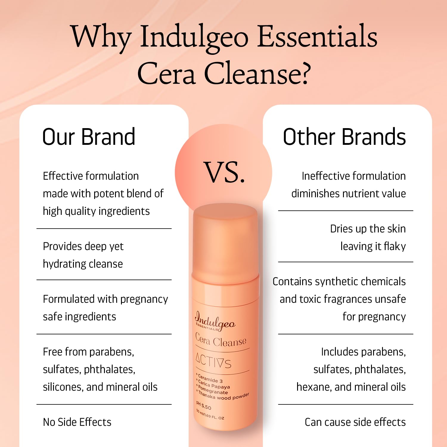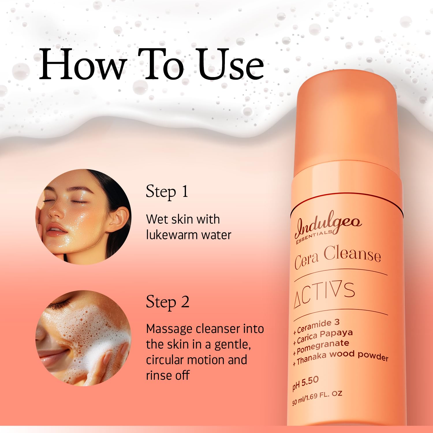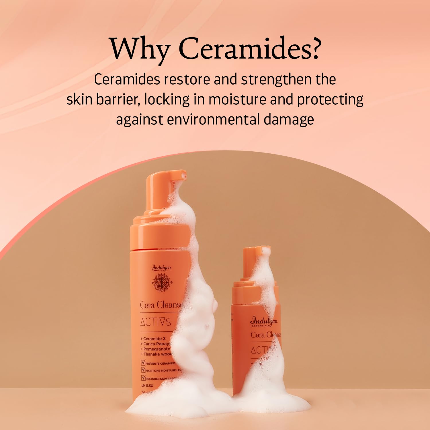 Indulgeo Essentials Ceramide Foaming Face Wash - Cera Cleanse | Gently Cleanses Hydrates & Repair Skin Tissues | Made with Ceramide Pomegranate & Carica Papaya | Suitable for All Skin Types - 50ml