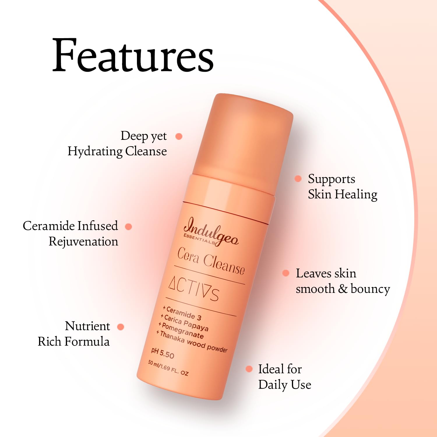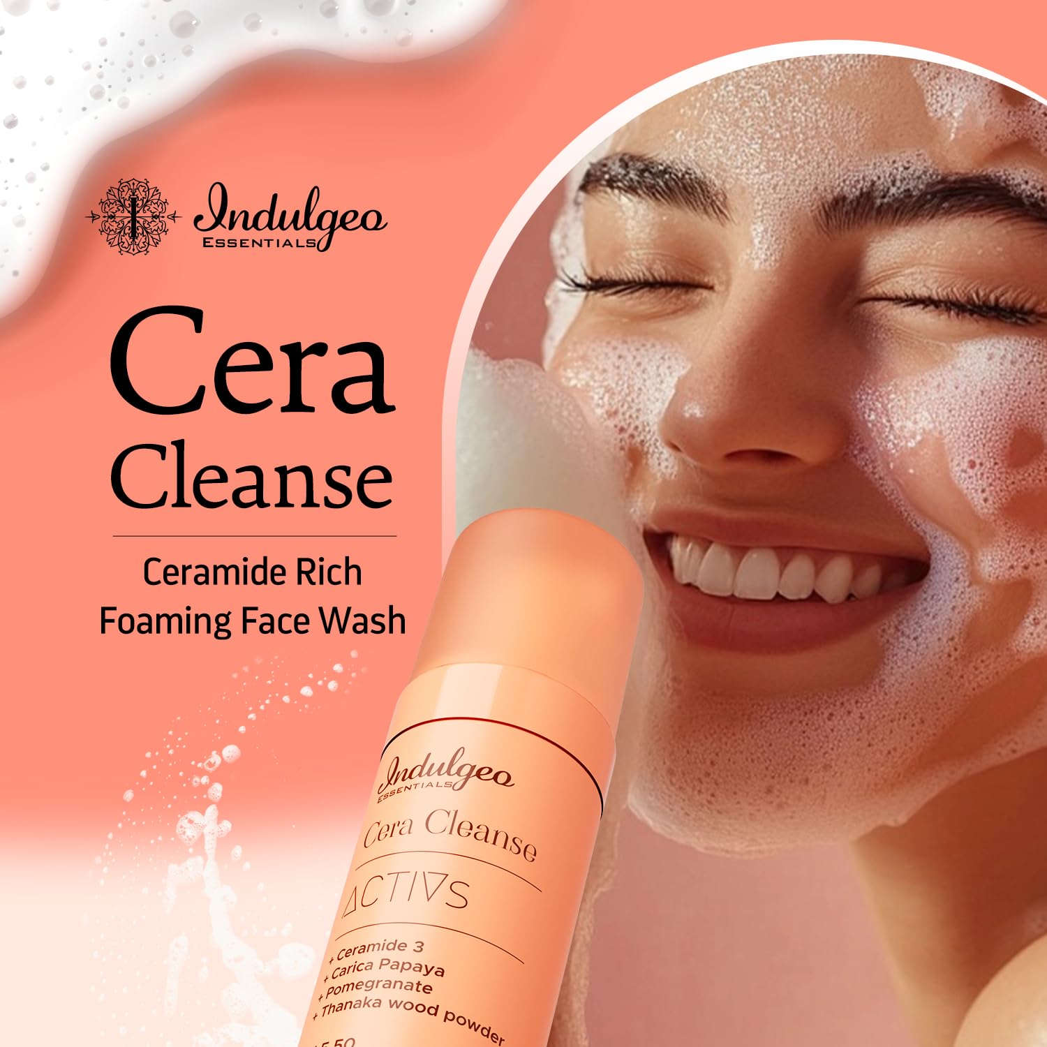 âCera-Cleanseâ foaming face wash is a sensorial energizing active blend that lifts impurities while a surge of Ceramide works on rejuvenation and undeniable luminosity.