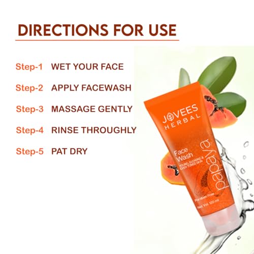 HomeBeautyFace CareCleansersFace WashJovees Herbal Papaya Face Wash For Glowing and Clear Skin with Papaya & Bilberry Ext | Gentle Cleanser For Brightens Skin, Removes Pigmentation & Dark Spots | For All Skin Types - 120ML (pack of 3)
