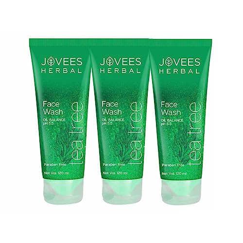 Jovees Herbal Tea Tree Face Wash for Oily & Sensitive Skin | Paraben & Alcohol-Free, Controls Oil, Prevents Breakouts, Remove Dead Skin | Gentle Cleanser For All Skin Types - 120ml (Pack of 3)