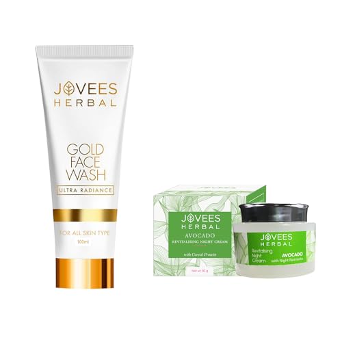 Jovees Herbal Ultra Radiance Gold Face Wash 100ml | Gives Nourished & Hydrated Skin And Avocado Revitalising Night Cream 50g For Younger Looking & Glowing Skin